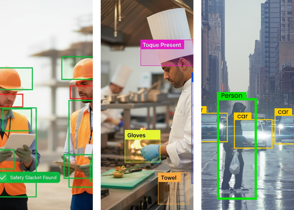 Monitor safety and hygiene conditions continuously without manual supervision. Detect PPE compliance, hygiene violations, unsafe behaviour, and restricted access in real time, with a full audit trail for review and improvement.